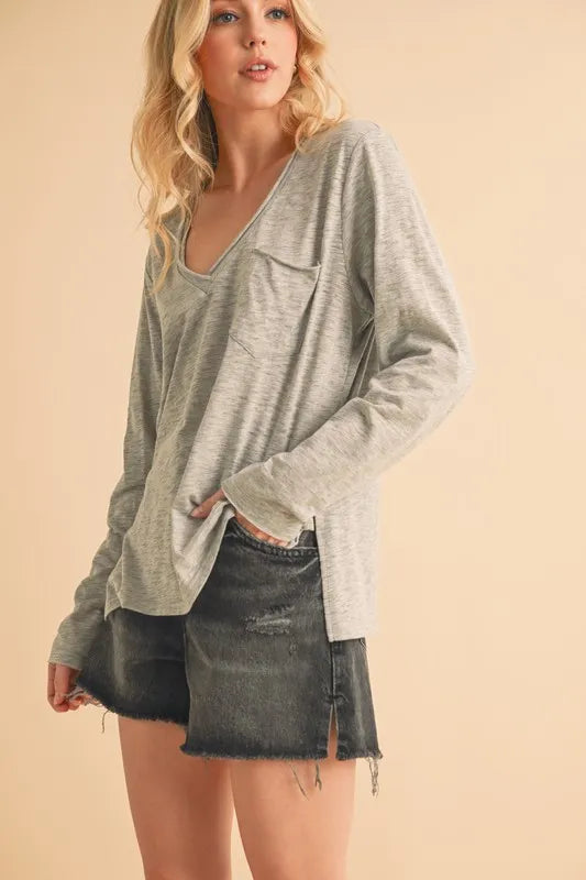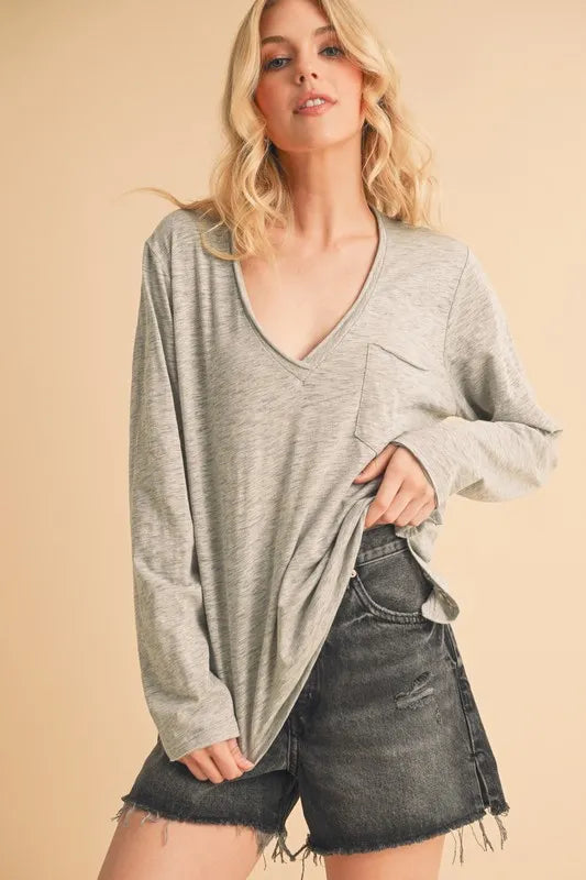 Aemi+Co V-Neck Long Sleeve Top
