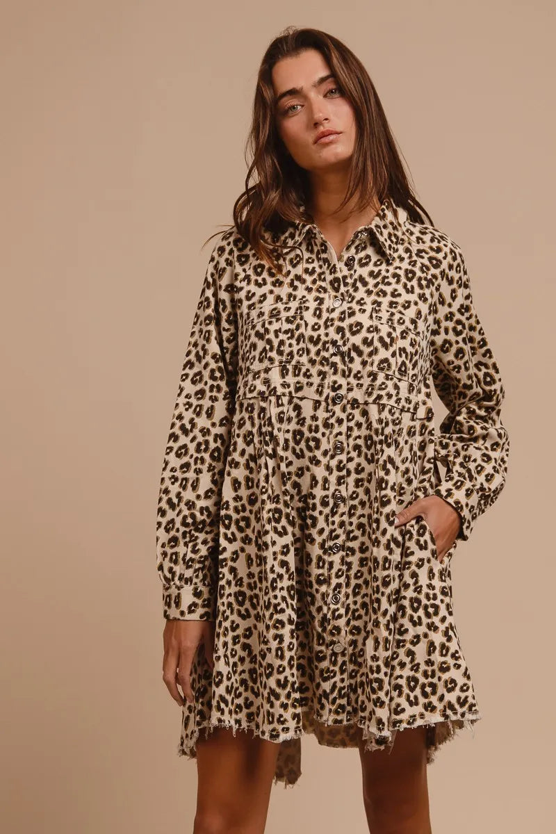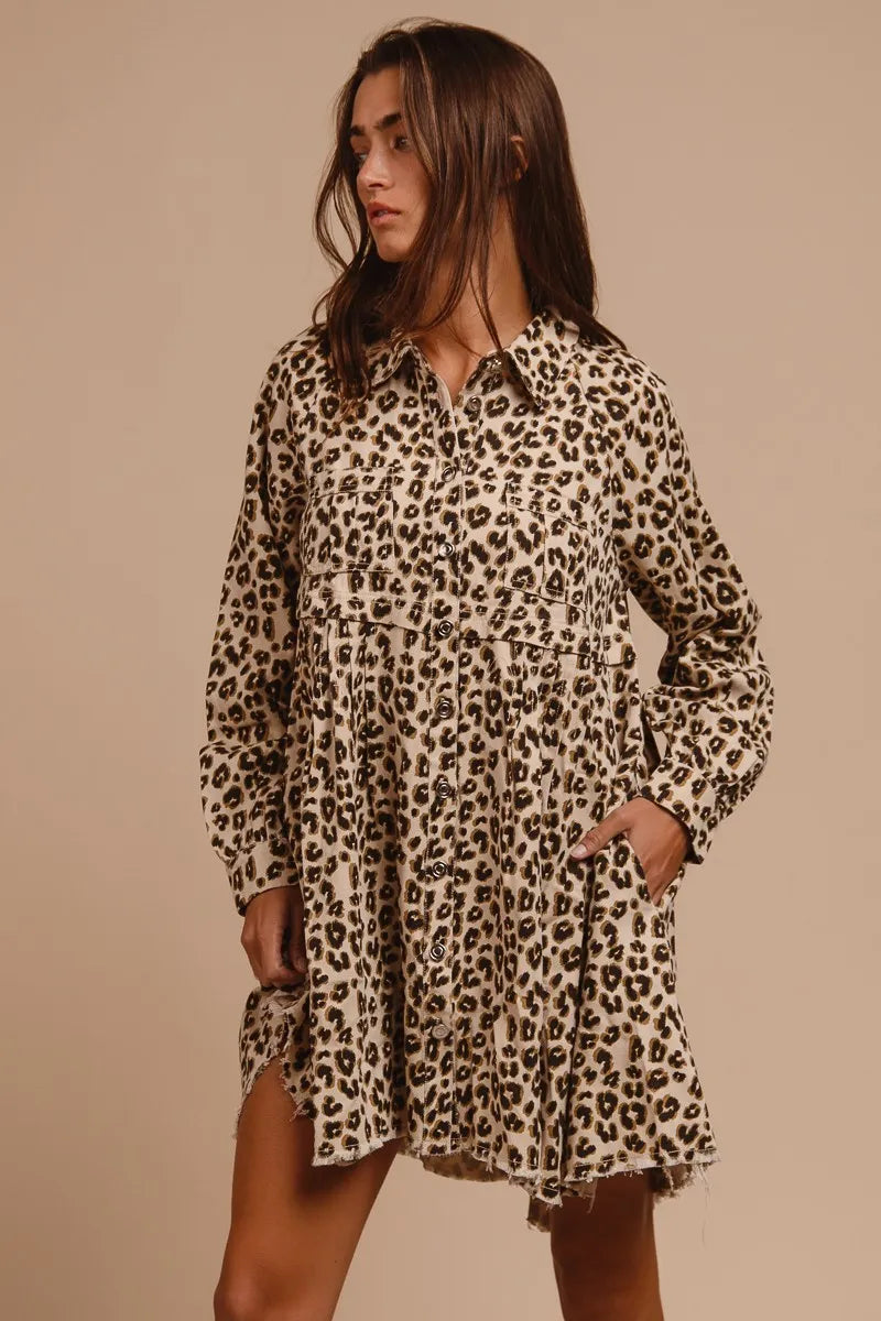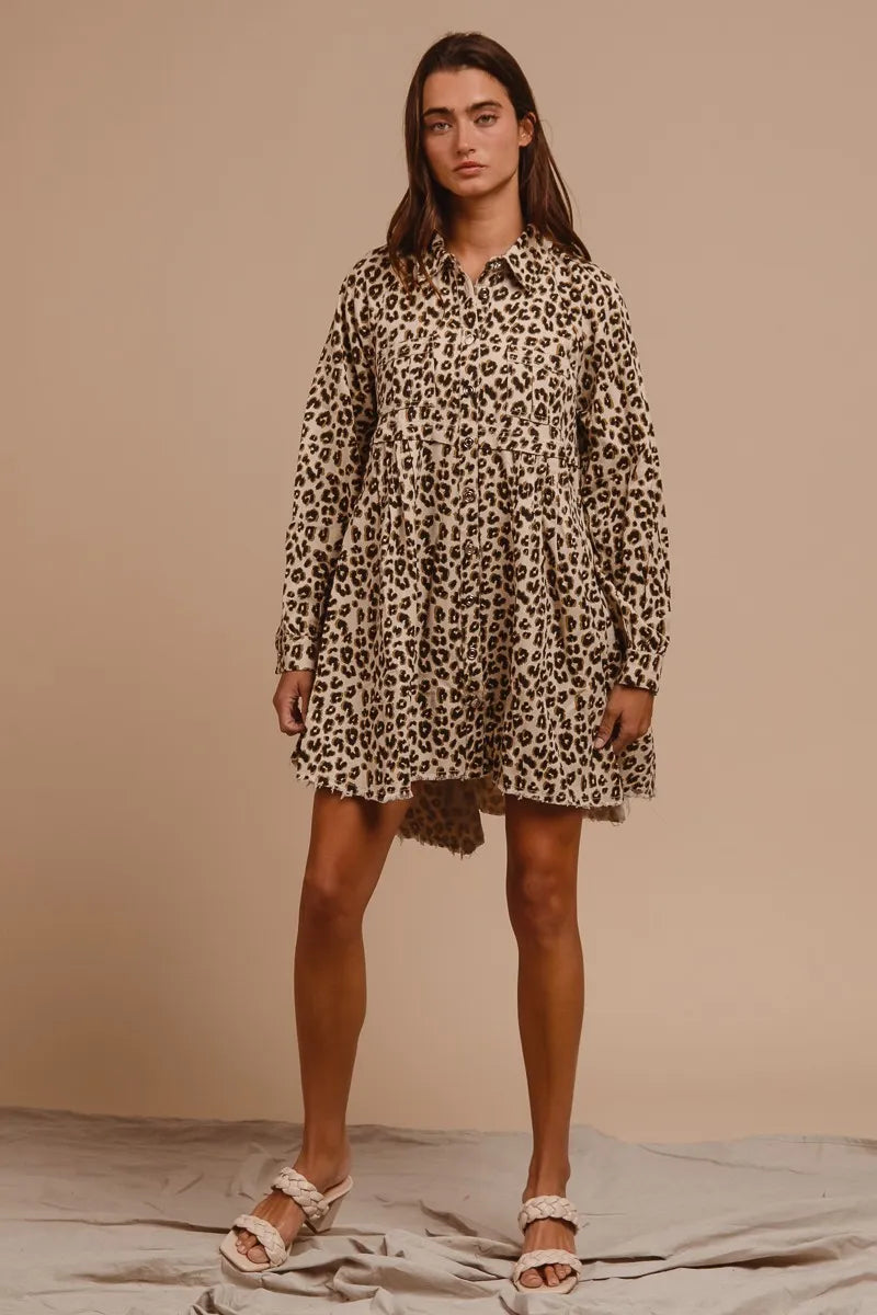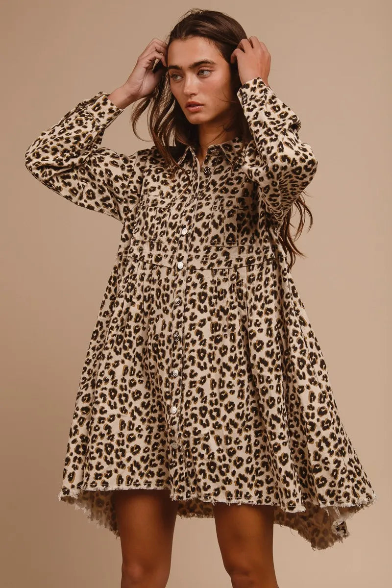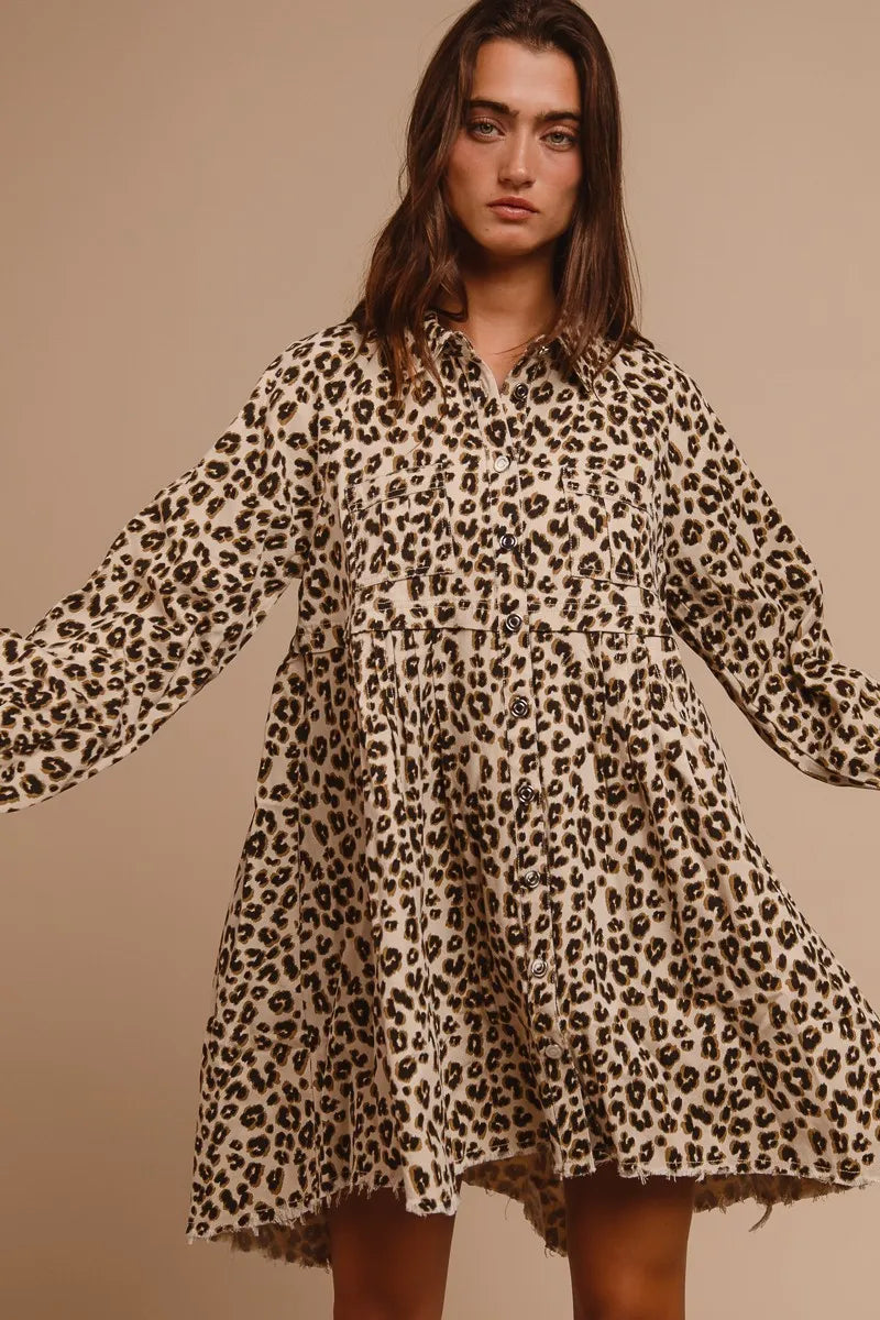 BiBi Washed Denim Button Down Dress with Side Pocket