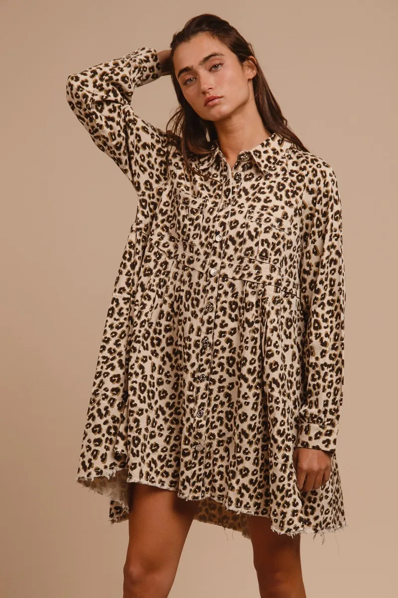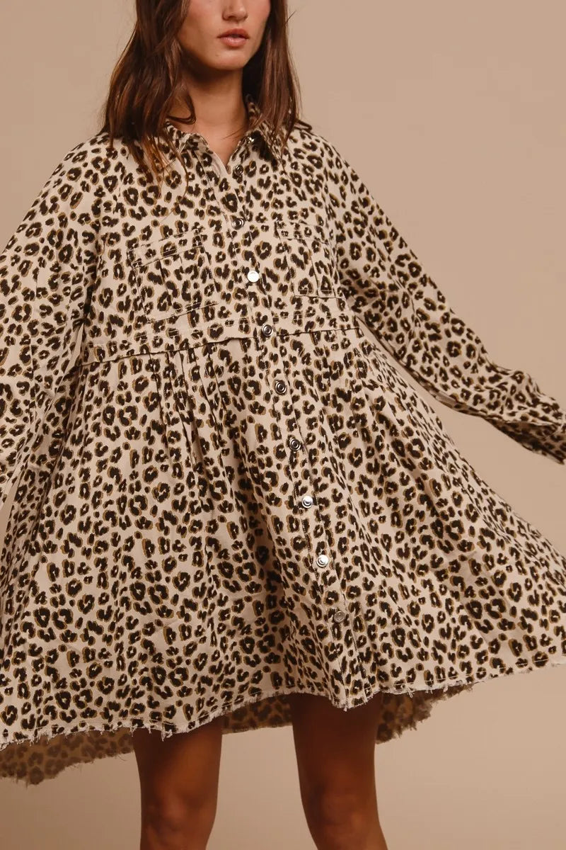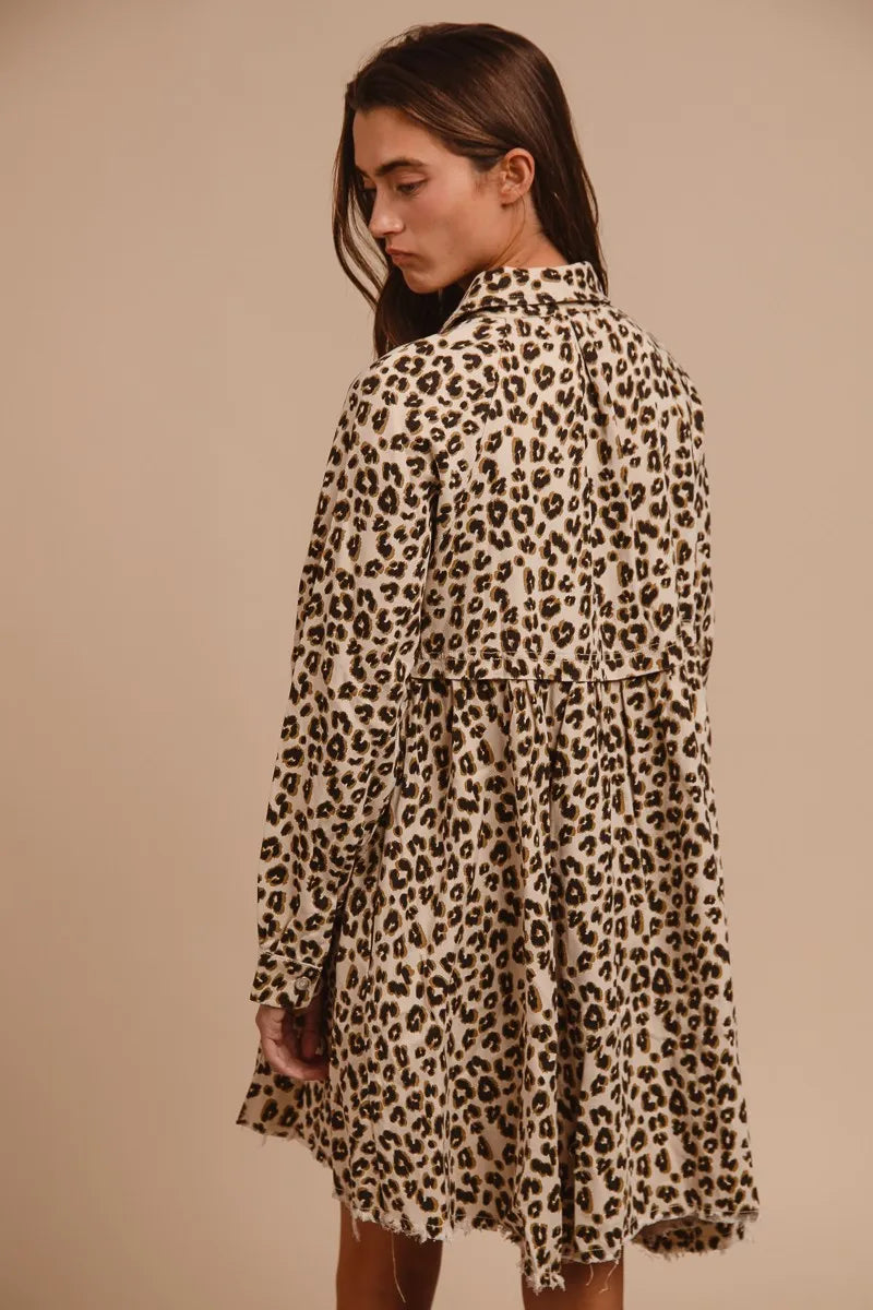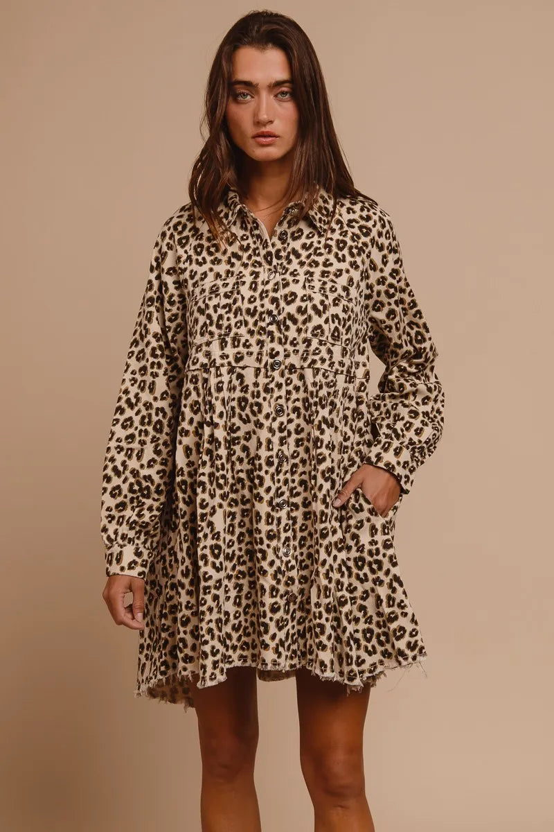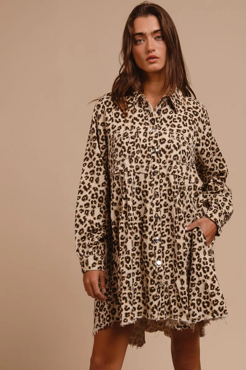 BiBi Washed Denim Button Down Dress with Side Pocket