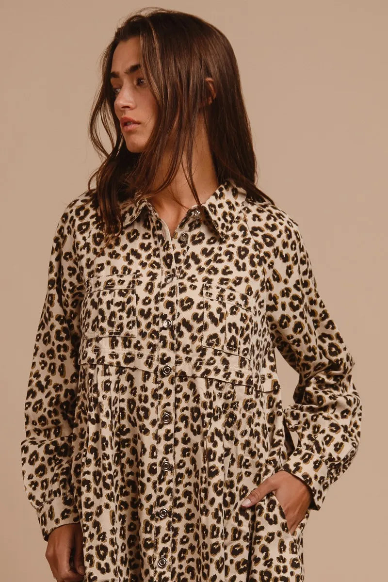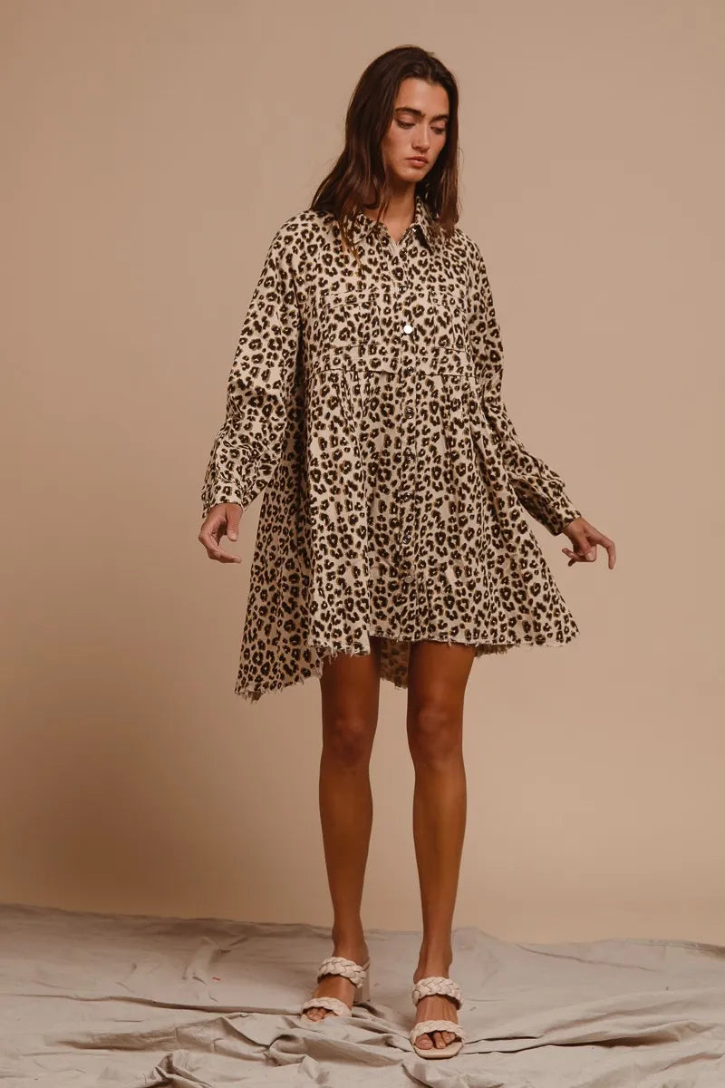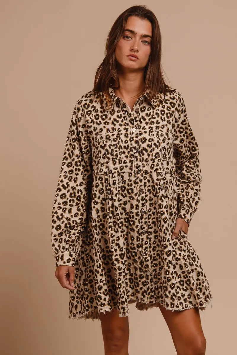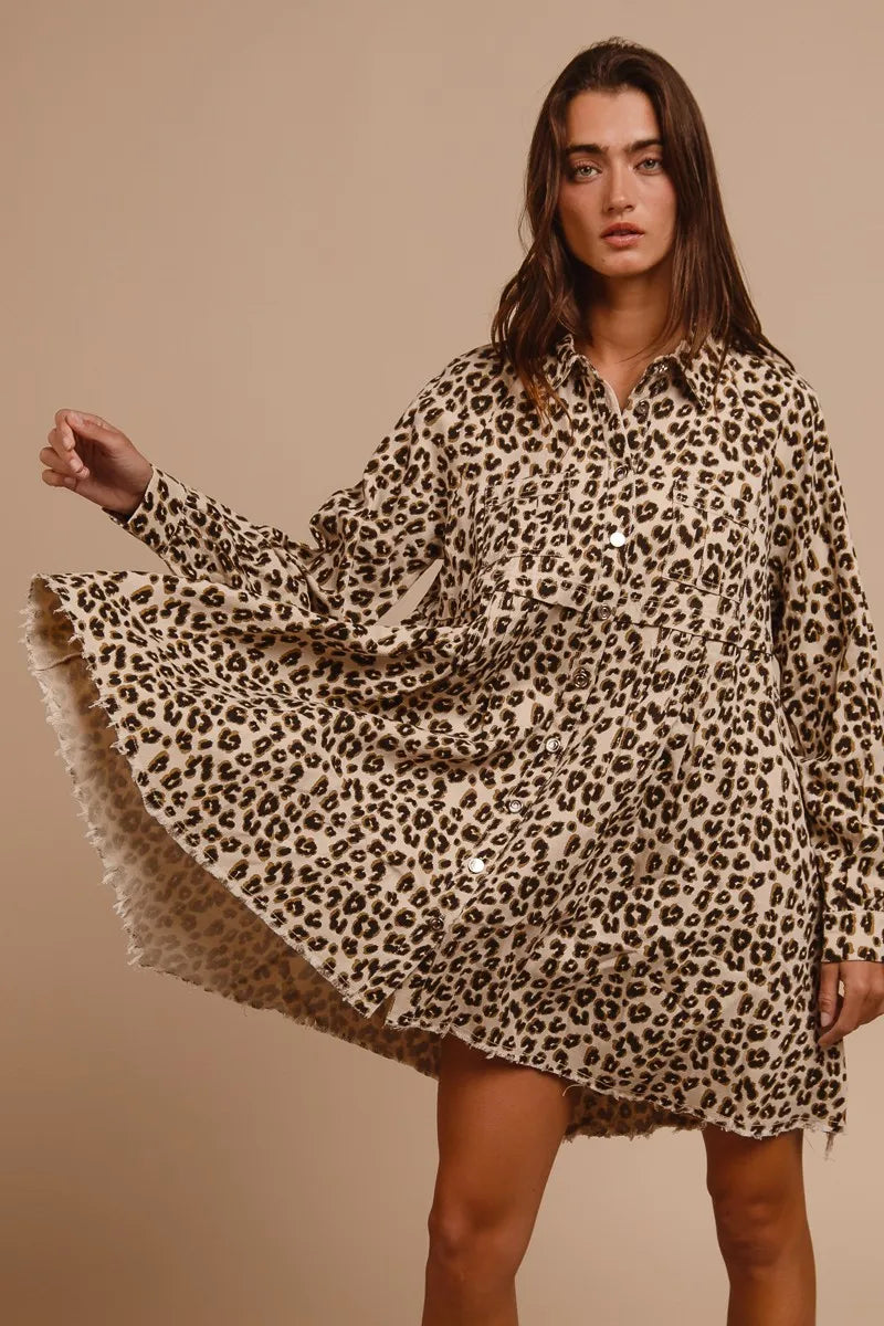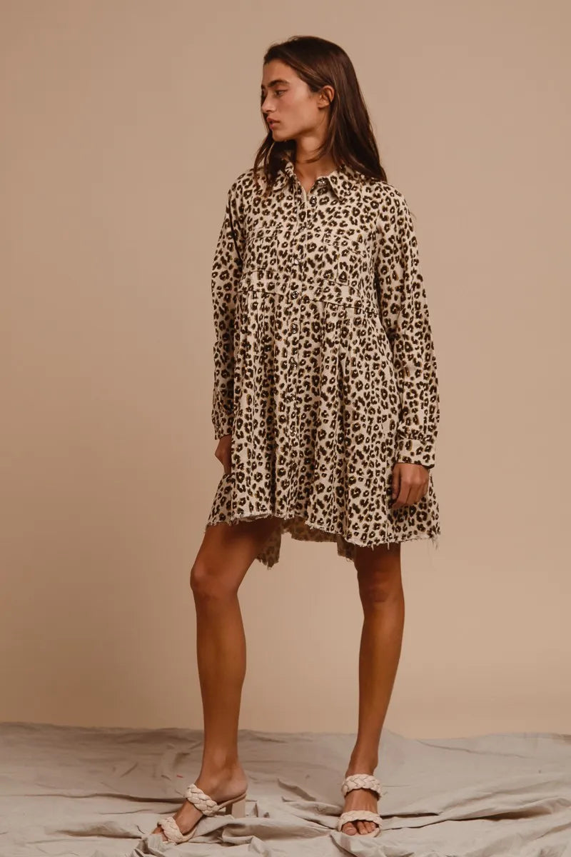 BiBi Washed Denim Button Down Dress with Side Pocket