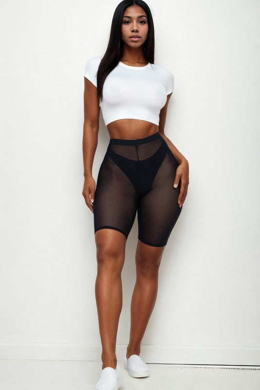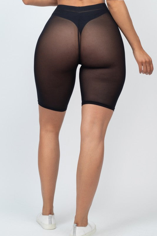 COVER UP BODYCON MESH SHEER BIKER SHORTS