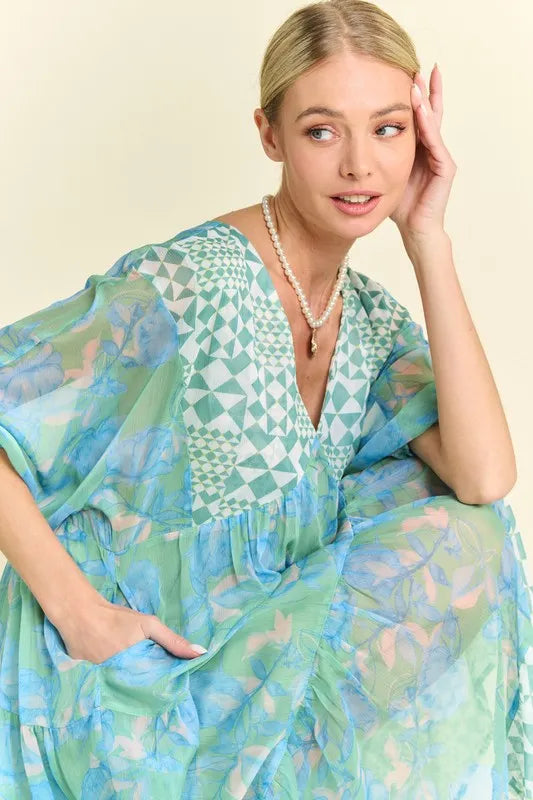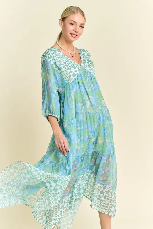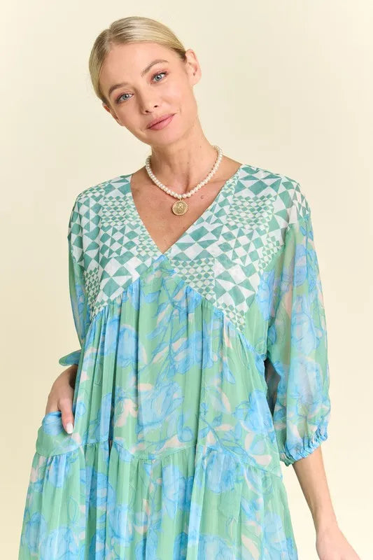 Davi & Dani Geo and Floral Print Mixed Tiered Dress