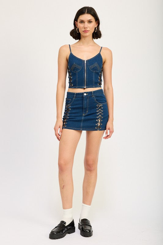 ZIP UP DENIM CORSET TOP